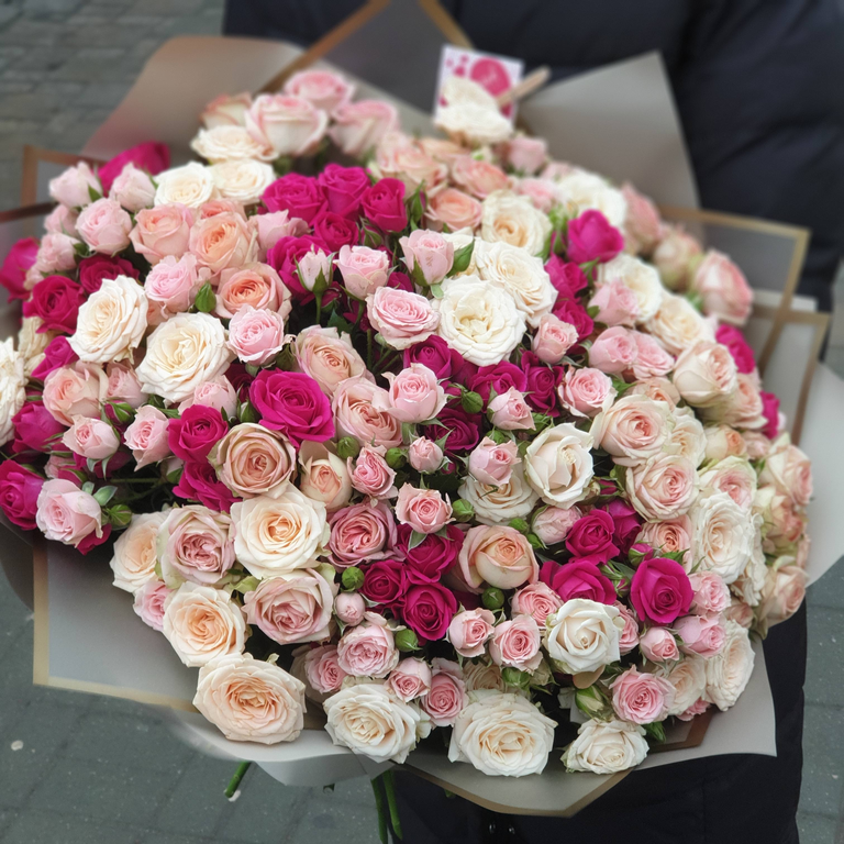 Большой выбор: от скромных букетов до пышных цветочных композиций.