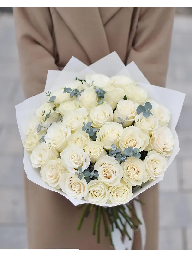 31 БЕЛАЯ РОЗА С ЭВКАЛИПТОМ