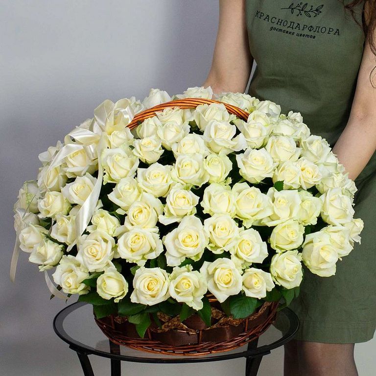 101 БЕЛАЯ РОЗА В КОРЗИНЕ