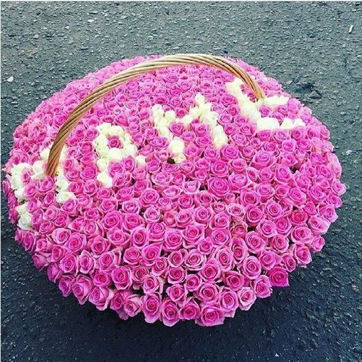 Состав букета: роза белая - 49 шт., роза розовая 252 шт. (40 см. так как роза подрезается), корзина
