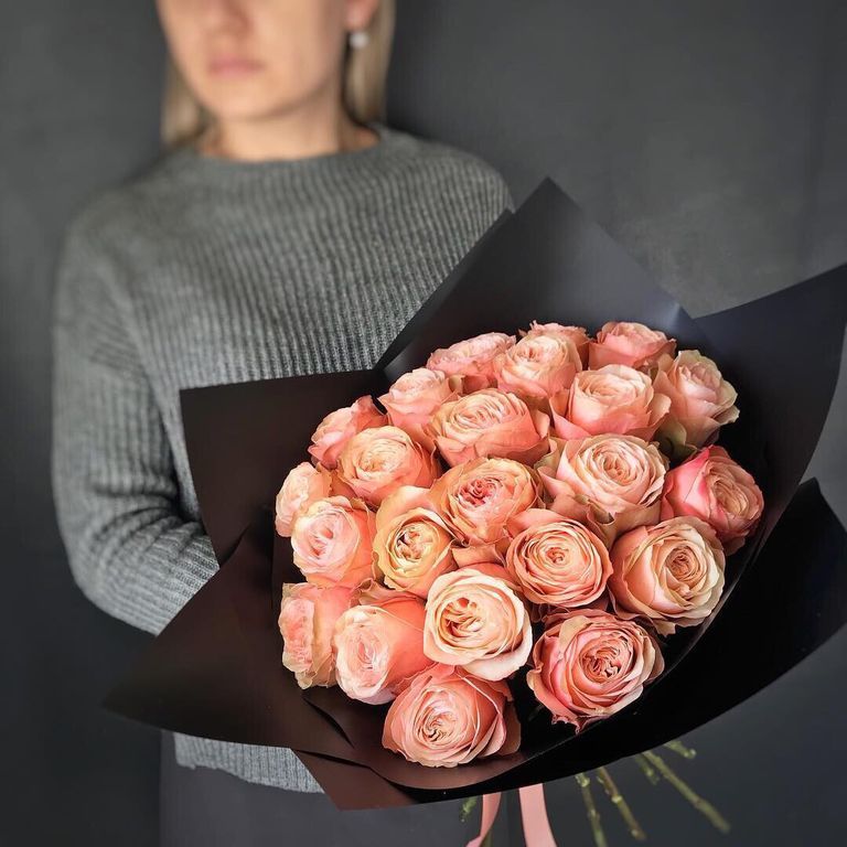 Состав букета: роза пионовидная 50 см - 23 шт, упаковка, лента
