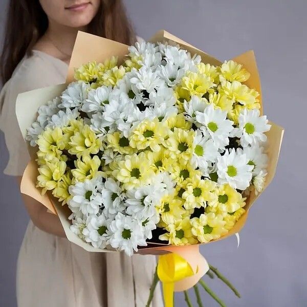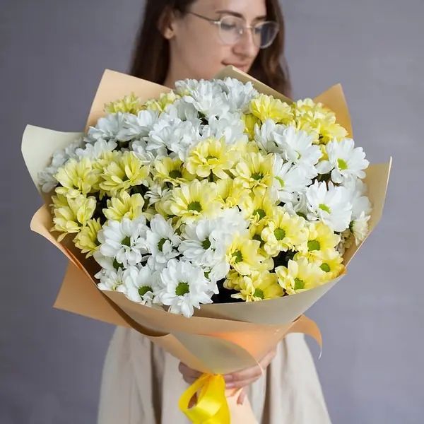 Состав: Ромашковидная кустовая хризантема - 11 кустов, Оформление
