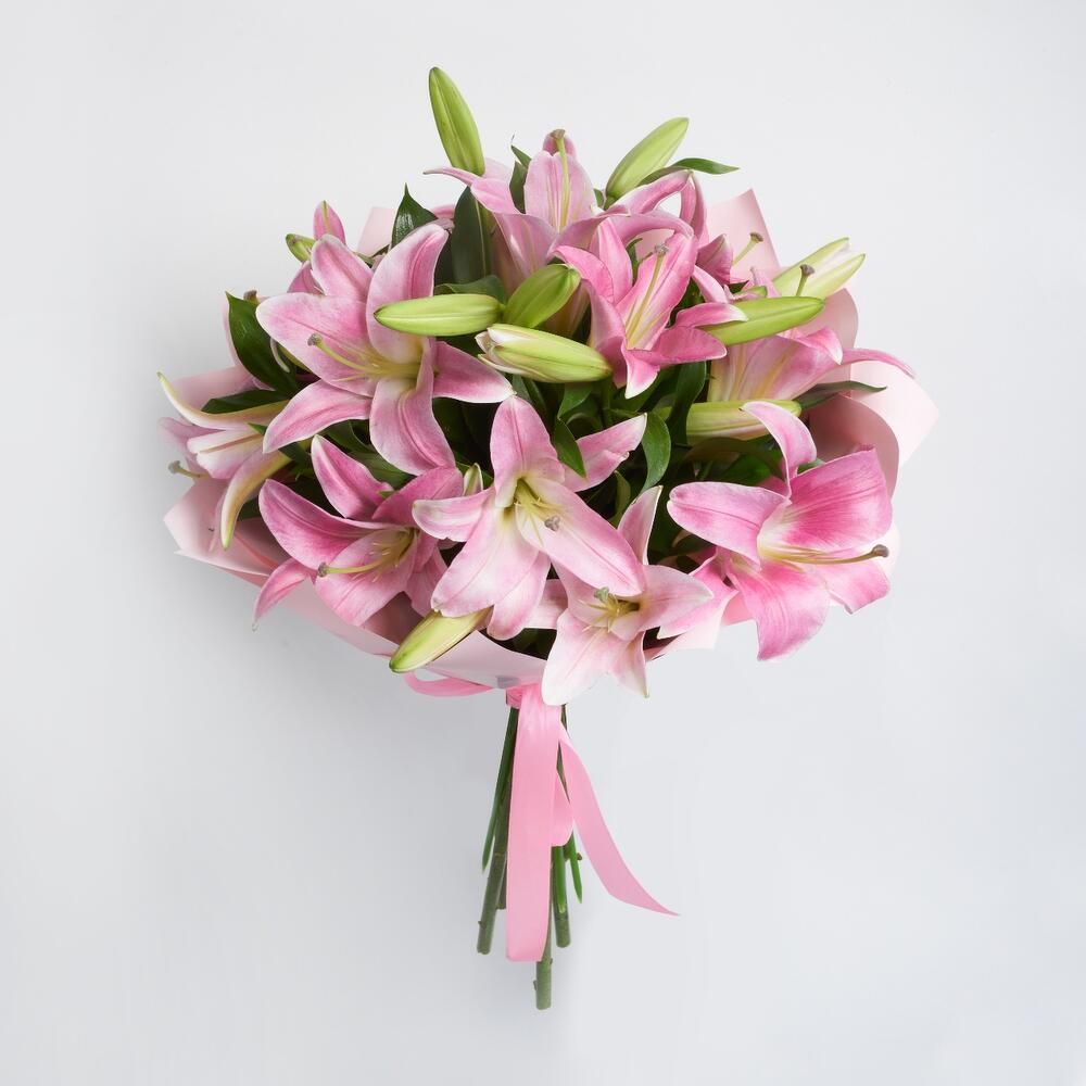5 розовых лилий