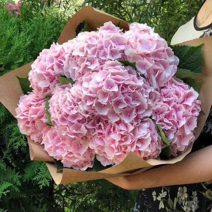 11 розовых гортензий в крафте