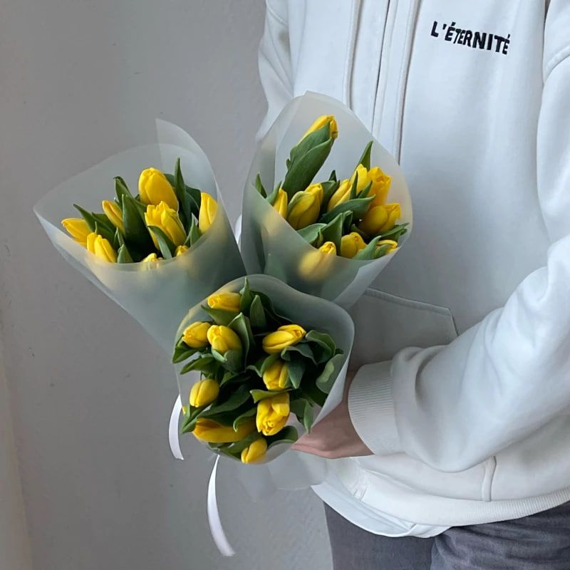 ТипбукетВид цветовтюльпанЦветЖелтый