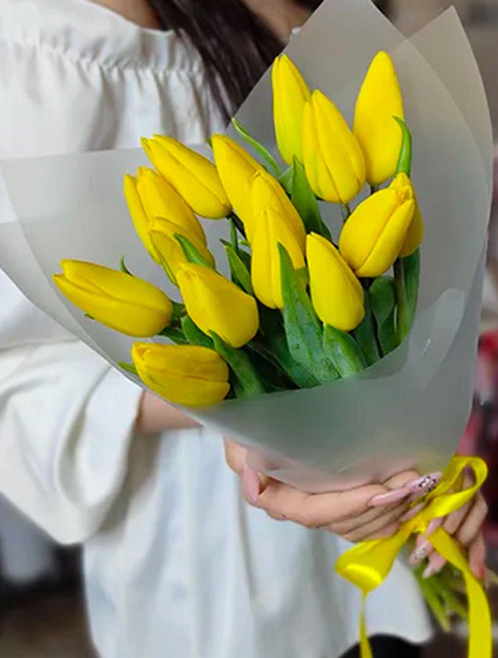 Состав: тюльпан желтый - 15 шт, упаковка, лента