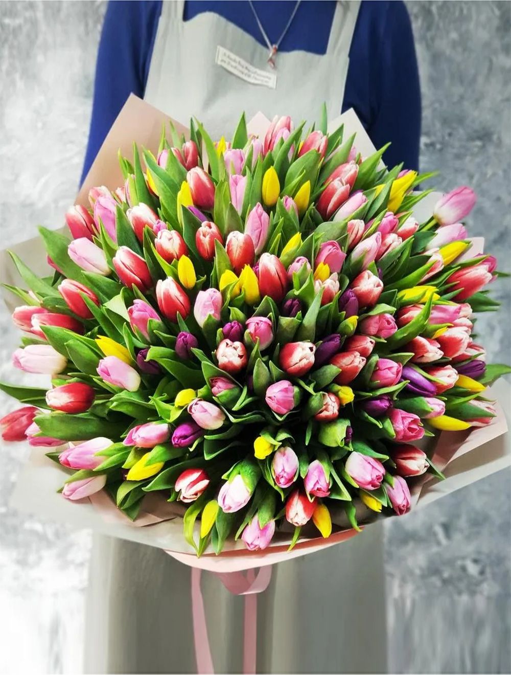 Букет из 151 тюльпана: яркий микс