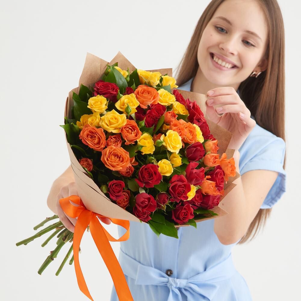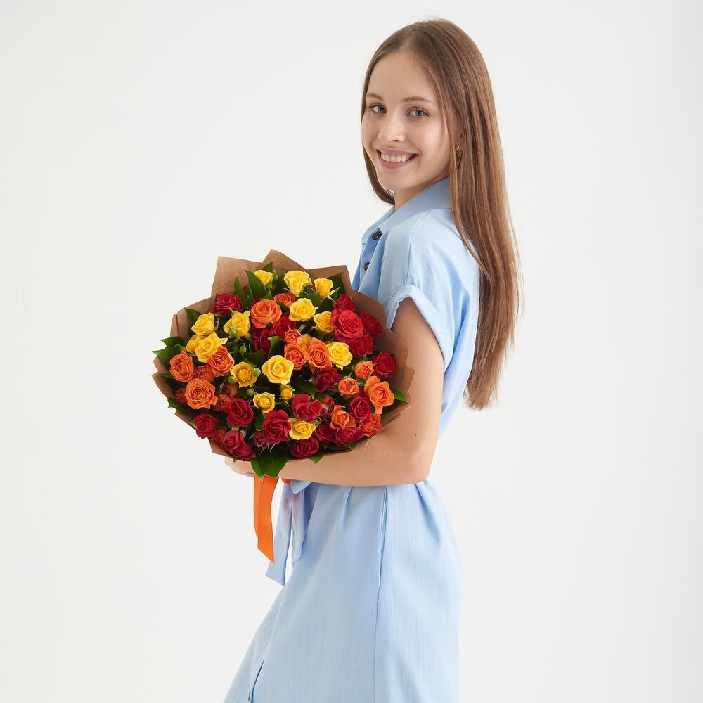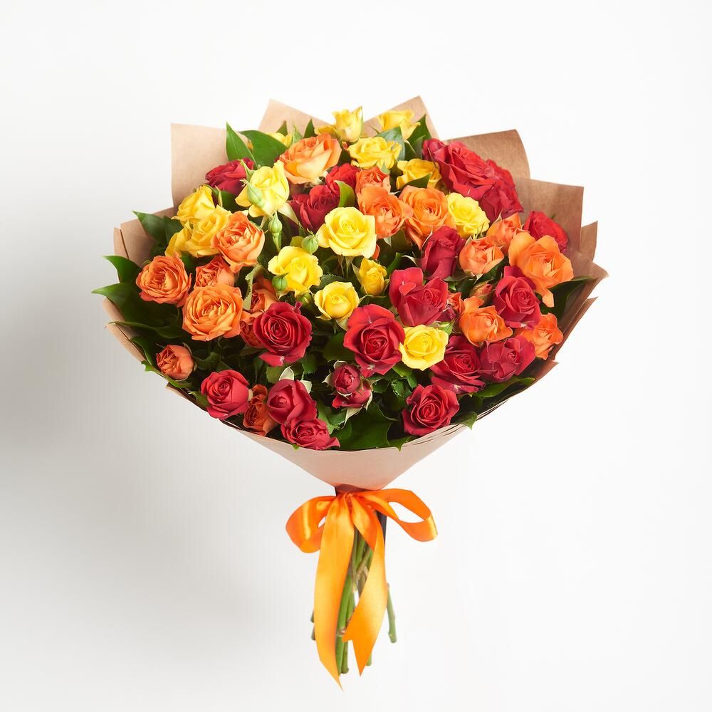 Состав: роза кустовая - 11 шт, крафт, лента