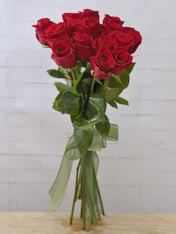 Букет из пятнадцати красных роз, перевязанных атласным бантом, смотрится лаконично и, одновременно с этим, солидно. Красные розы это классика. А классика всегда вне времени. Каждый цветок гарантированно свежий и качественный.
