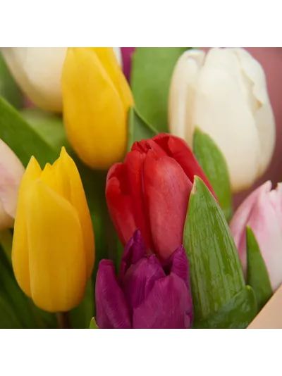 Состав: тюльпан микс - 15 шт, упаковка, лента