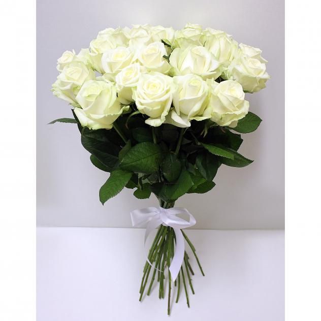 Состав букета: роза белая - 21 шт., лента