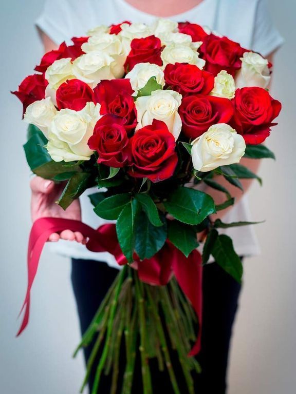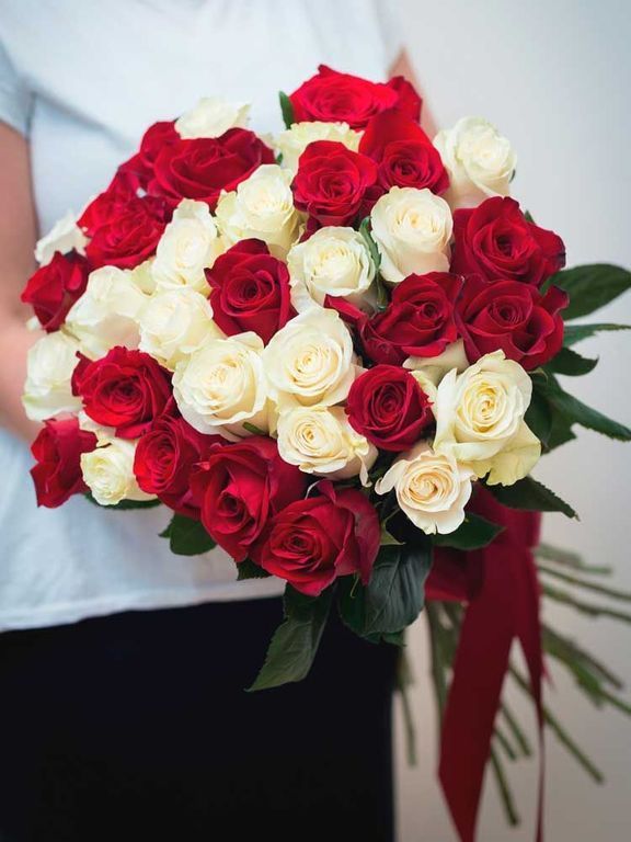 БУКЕТ ИЗ 31 БЕЛО-КРАСНОЙ РОЗЫ