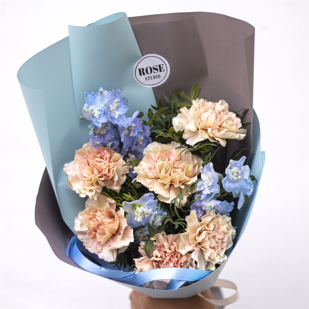 Состав: диантус - 6 шт., дельфиниум - 3шт.