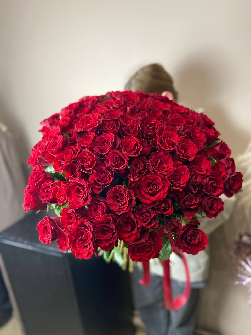 Состав: Роза Кения Premium 50 см - 151 шт, лента
