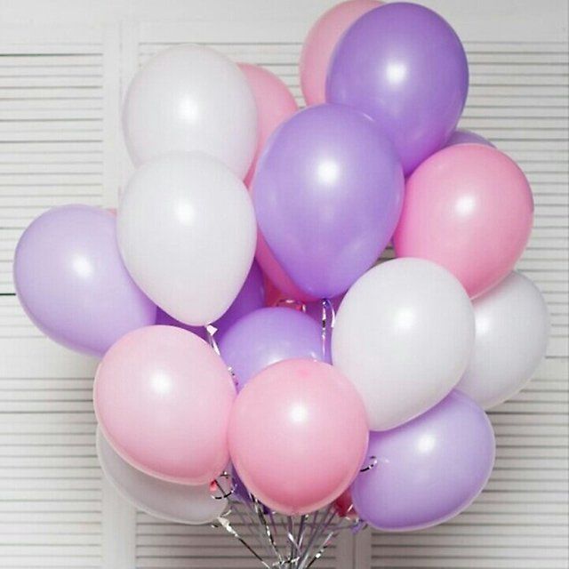 Состав: шары гелиевые латексные (белые, сиреневые) - 21шт.