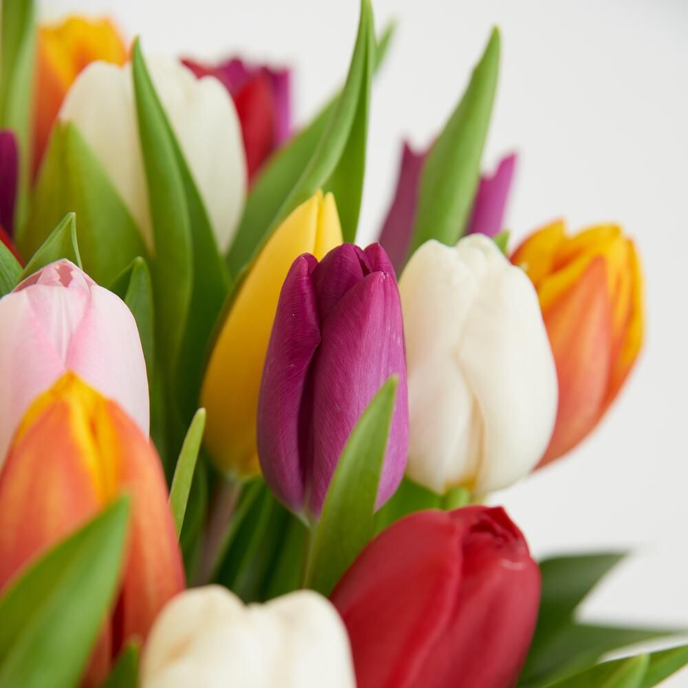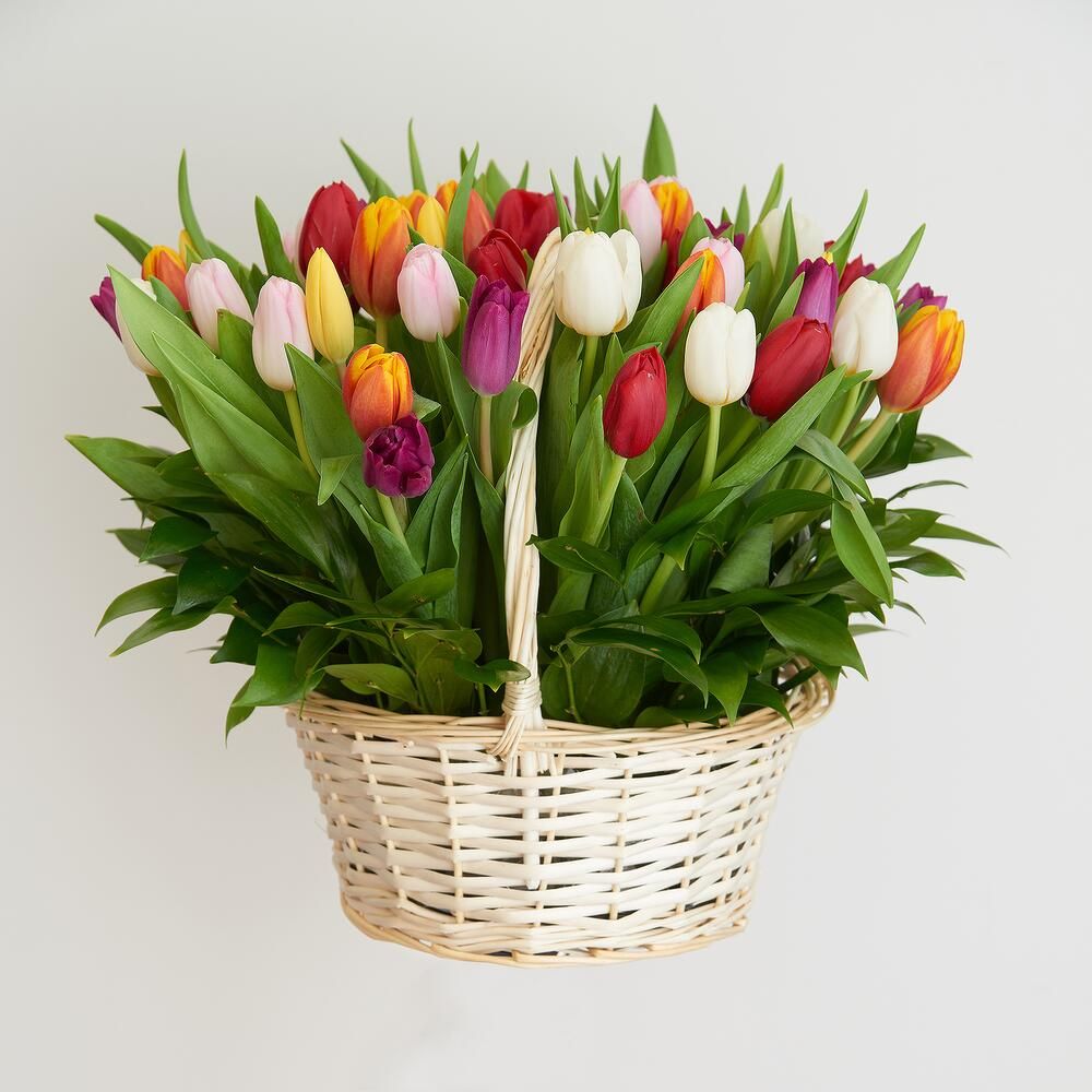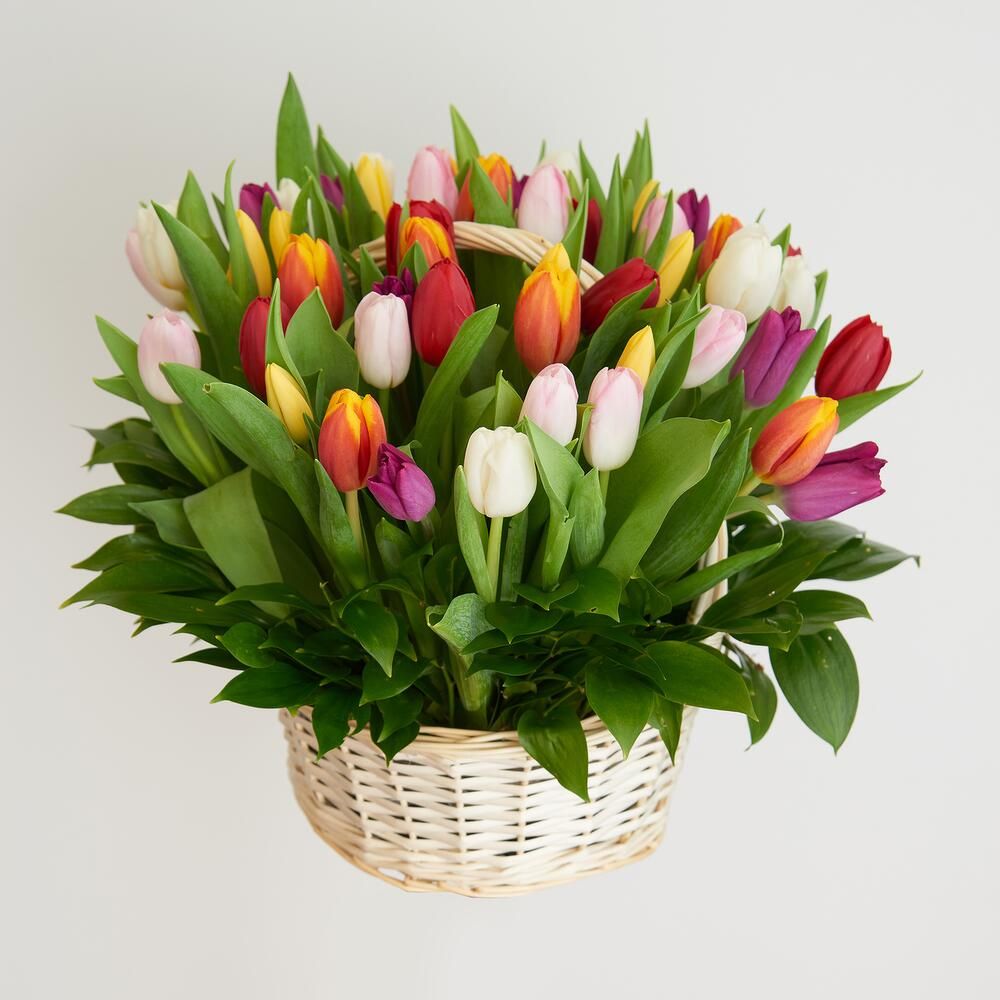 Корзина ярких тюльпанов