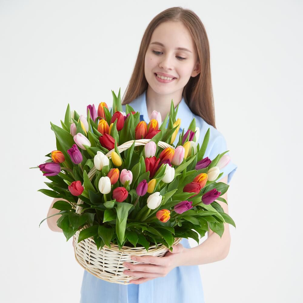 Состав: тюльпан - 51 шт, корзина